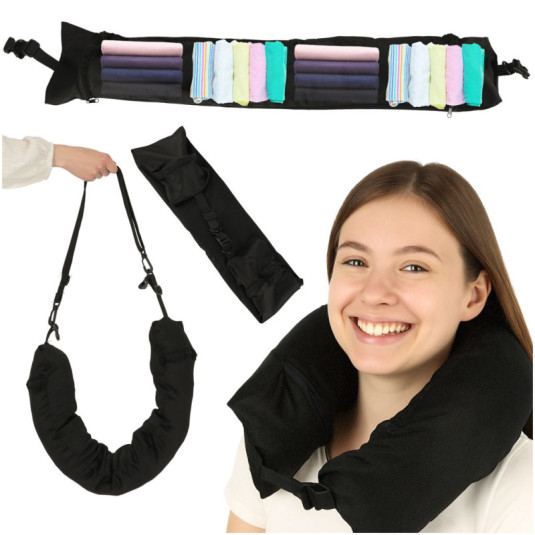 Cestovný vankúš cestovná rohovková opierka hlavy opierka krku úložný priestor na náplň čierna