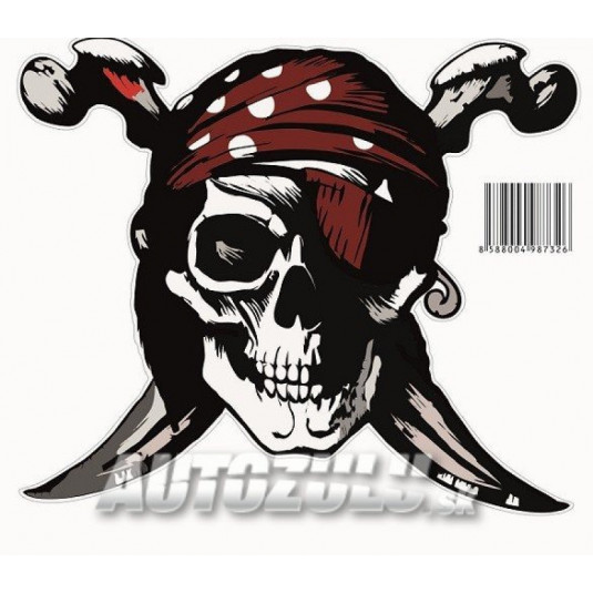 Krásna tlačená samolepka lebka nože. Tlačená na bielu fóliu.