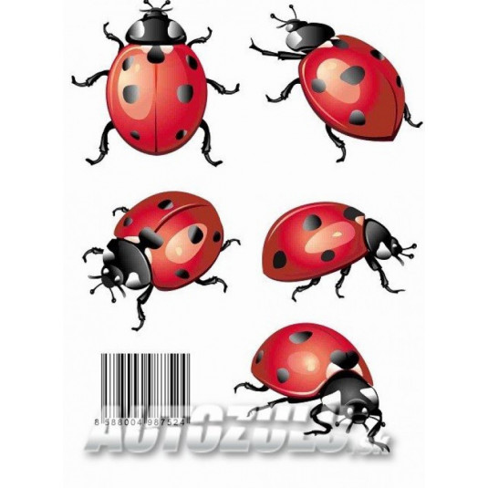 Krásna farebná tlačená samolepka lienky set. Tlačená na bielu fóliu.