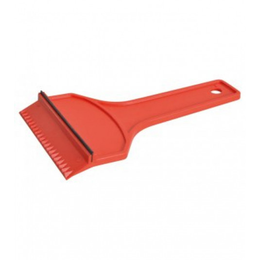 Klasická škrabka na ľad SUPER. Jednoduchý dizajn s vrúbkovanou stranou, hladkým profilom aj gumovou stierkou pre efektívne zotretie kvapiek.