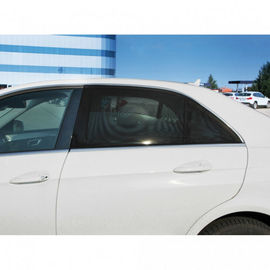 Vyrobené zo 100% dvojvrstvového polyesteru. Dve funkcie: slnečná clona, ktorá chráni interiér a cestujúcich pred slnečným žiarením bez toho, aby však blokovala viditeľnosť smerom von; sieťka proti hmyzu, aby sa zabránilo vniknutiu hmyzu aj so spustenými oknami. Dá sa použiť na zadné bočné okná, aj keď je vozidlo v pohybe. Nebráni to vzostupu a zostupu kryštálu. Skladané späť na seba zaberajú málo miesta.